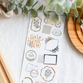 Delicate foiled details catch the light and add dimension without overwhelming your pages, making these deco stickers both refined and versatile. Use them to elevate journaling layouts, seasonal spreads, or creative planning pages with ease.