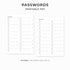 Organize and keep track of your passwords with our printable Passwords inserts.