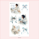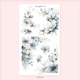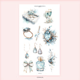 The Snowlight Reverie collection is a set of five coordinating sticker sheets inspired by the calm beauty of winter in January. The illustrations draw from icy landscapes, gentle frost details, and serene winter moments, all brought together in a refined palette of icy blue and warm gold tones, with silver foiled decorative accents.
